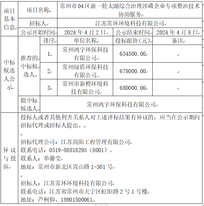 常州市04區(qū)新一輪太湖綜合治理涉磷企業(yè)專項(xiàng)整治技術(shù)協(xié)助服務(wù)中標(biāo)候選人公示