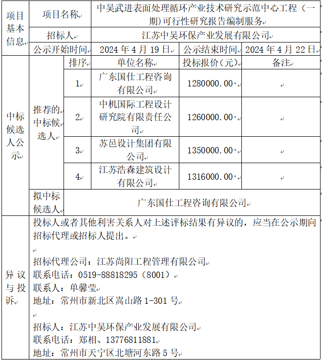 中吳武進(jìn)表面處理循環(huán)產(chǎn)業(yè)技術(shù)研究示范中心工程(一期)可行性研究報(bào)告編制服務(wù)中標(biāo)候選人公示