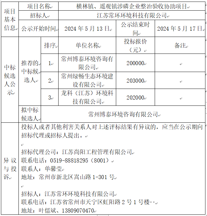 橫林鎮(zhèn)、遙觀鎮(zhèn)涉磷企業(yè)整治驗(yàn)收協(xié)助項(xiàng)目 中標(biāo)候選人公示