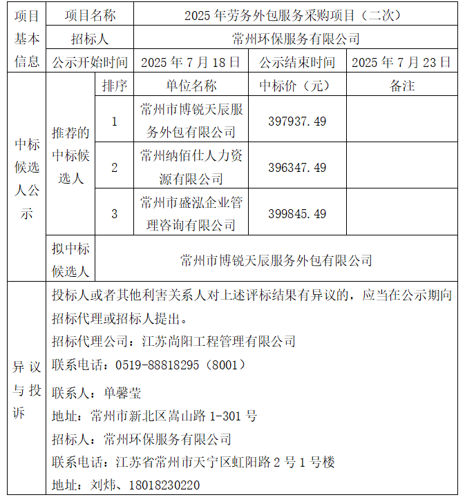 2025年勞務(wù)外包服務(wù)采購項目(二次)中標(biāo)候選人公示