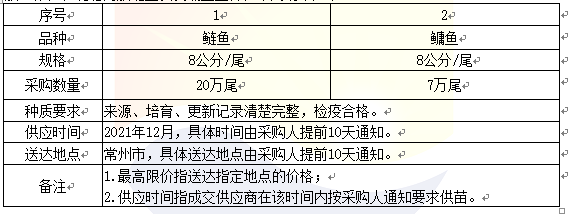 采購需求:本項(xiàng)目是2021年北塘河增殖放流苗種項(xiàng)目,在北塘河開展?jié)O業(yè)資源增殖流放工作,在北塘河放鰱魚以及鳙魚魚種,采購清單如下: