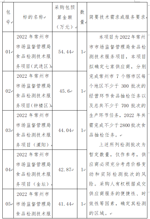 項目名稱:2022年常州市市場監(jiān)督管理局食品檢測技術(shù)服務(wù)項目
