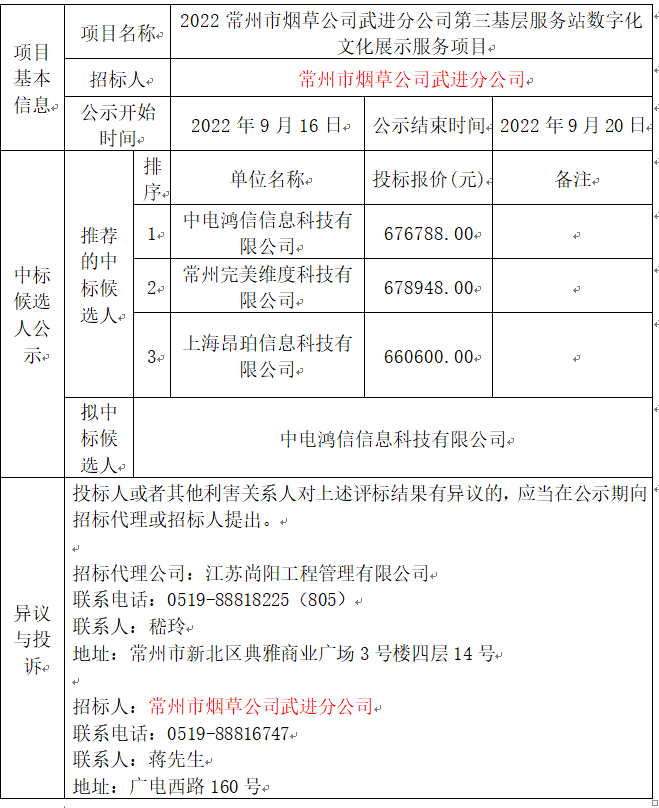 2022常州市煙草公司武進(jìn)分公司第三基層服務(wù)站數(shù)字化文化展示服務(wù)項(xiàng)目中標(biāo)候選人公示
