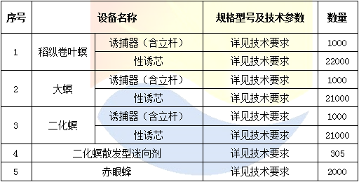 本項目為2020年水稻病蟲綠色防控物資采購項目,包括但不限于招標文件及其基本技術要求范圍內相應貨物制造前的準備(包括現(xiàn)場踏勘、技術核對等)、設計、制作、包裝、保險、運輸、裝卸、安裝、調試、培訓、驗收、保修等全部工作內容,采購清單如下: