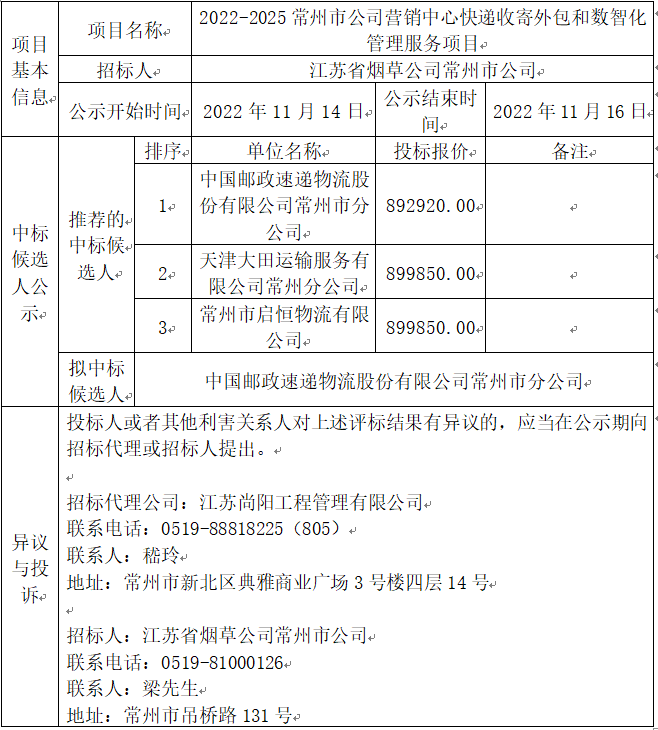 2022-2025常州市公司營銷中心快遞收寄外包和數(shù)智化管理服務(wù)項(xiàng)目中標(biāo)候選人公示